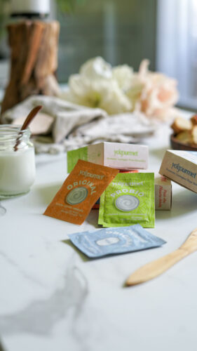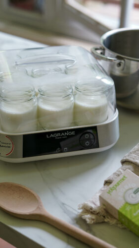 - 1 sachet de ferments lactiques (ex. les ferments de chez Yogourmet : de qualité et vous pouvez opter pour une version classique ou aux probiotiques que je trouve vraiment top) ou un yaourt nature du commerce (sans additifs)).