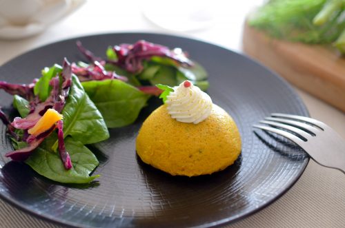 Dôme de carottes curry coco et sa mousse de chèvre