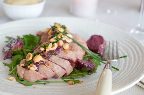Filet de canette aux échalotes, moutarde et vin rouge