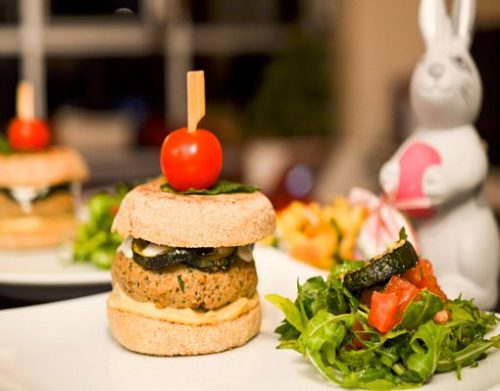 C’est au programme: Muffin Burger à l’agneau, houmous, citron confit et courgettes grillées