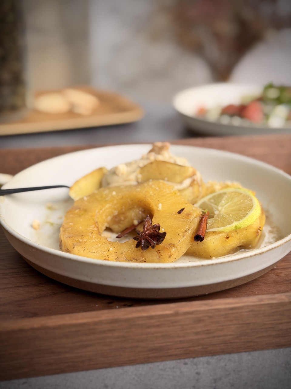 J’adore faire infuser des épices dans ma préparation au miel, mais c’est optionnel. Vous pouvez également opter pour une version 100% vanille ou simplement un trait de jus de citron.