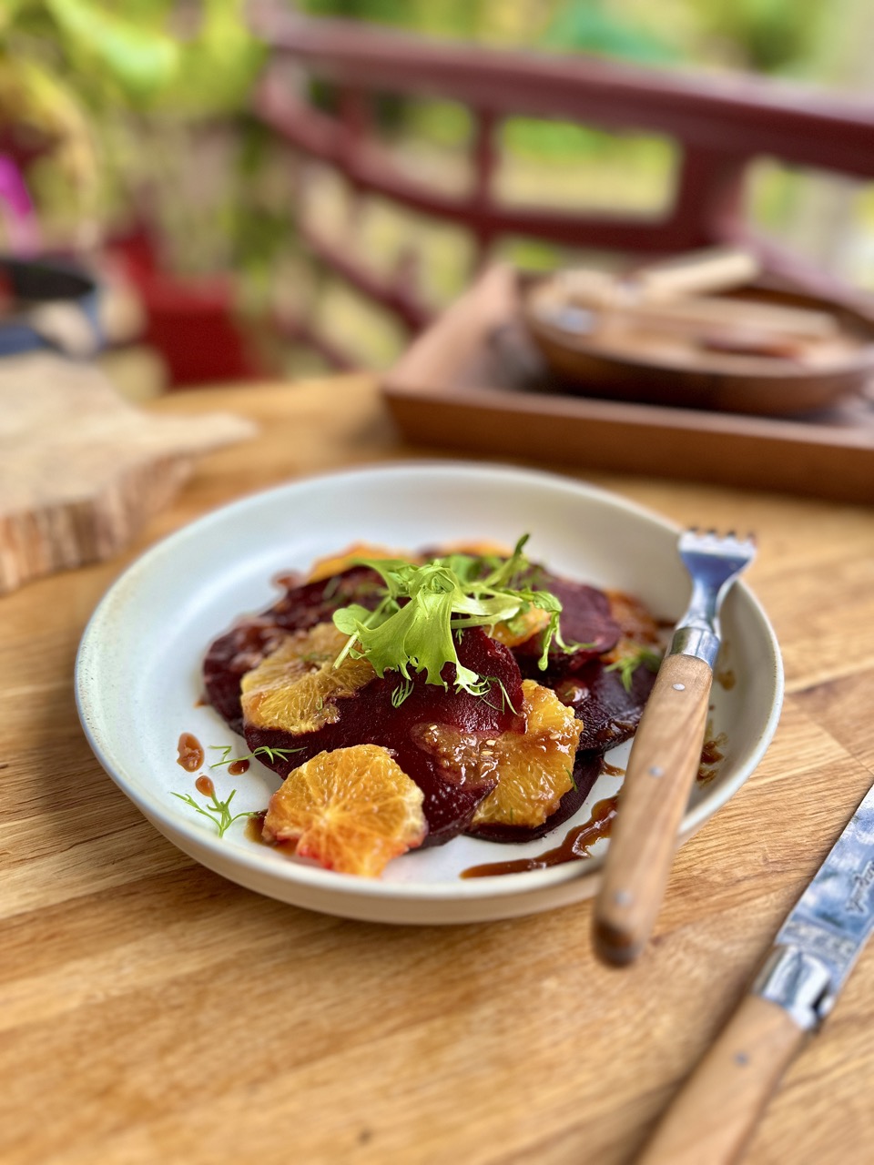 Pour accompagner cette entrée fraiche et originale, je vous propose un verre de vin rouge, comme ce Côtes de Bourg du Château Puybarbe, cuvée Gaia, qui se marie parfaitement la fraîcheur du carpaccio. Ses notes de fruits noirs et sa belle finesse donnent du relief à la betterave et soulignent la touche acidulée de mandarine-yuzu. Un accord surprenant, très harmonieux.