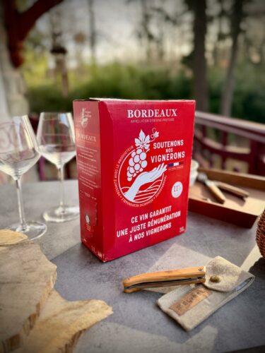 Cette assiette pleine de rondeur se marie à merveille avec un Bordeaux. A la fois souple et fruité, je vous propose ici un BIB en AOP Bordeaux de l’initiative « Soutenons nos Vignerons ». Avec ses notes de cassis et d’épices douces, il s’associe très bien avec la texture fondante du boudin blanc et les arômes des champignons.