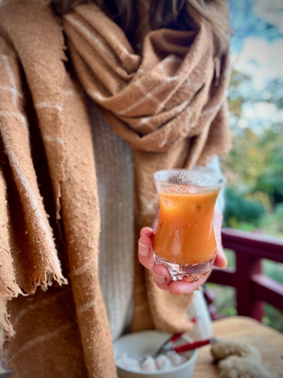 Côté bienfaits, la carotte illumine le teint grâce à sa richesse en bêta-carotène, la poire apporte une touche sucrée et hydratante, et le gingembre réveille le tout avec son petit piquant revigorant. J’ajoute une touche de citron vert et de la vitamine A grâce aux clémentines. Voilà les secrets d’un jus aussi bon que bienfaisant.