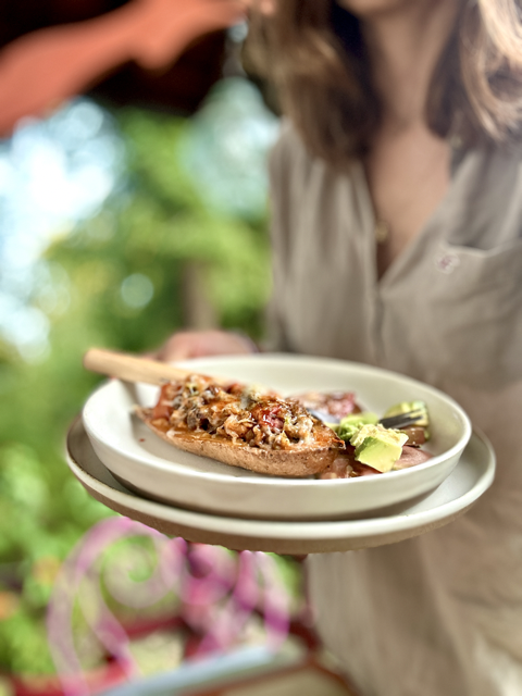 Cette recette est également délicieuse avec de grosses pommes de terre, une courge ou un autre légume que vous pouvez facilement « farcir ».