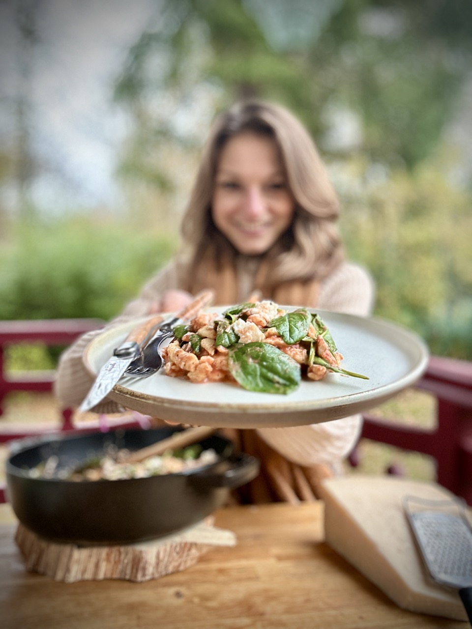 Quand l’Alsace rencontre l’Italie…. ça donne des spaetzle à la sauce tomate crémeuse et mozzarella. Une merveille hyper réconfortante et facile à faire. En 10 minutes chrono vous être prêts à manger, cuisson comprise.