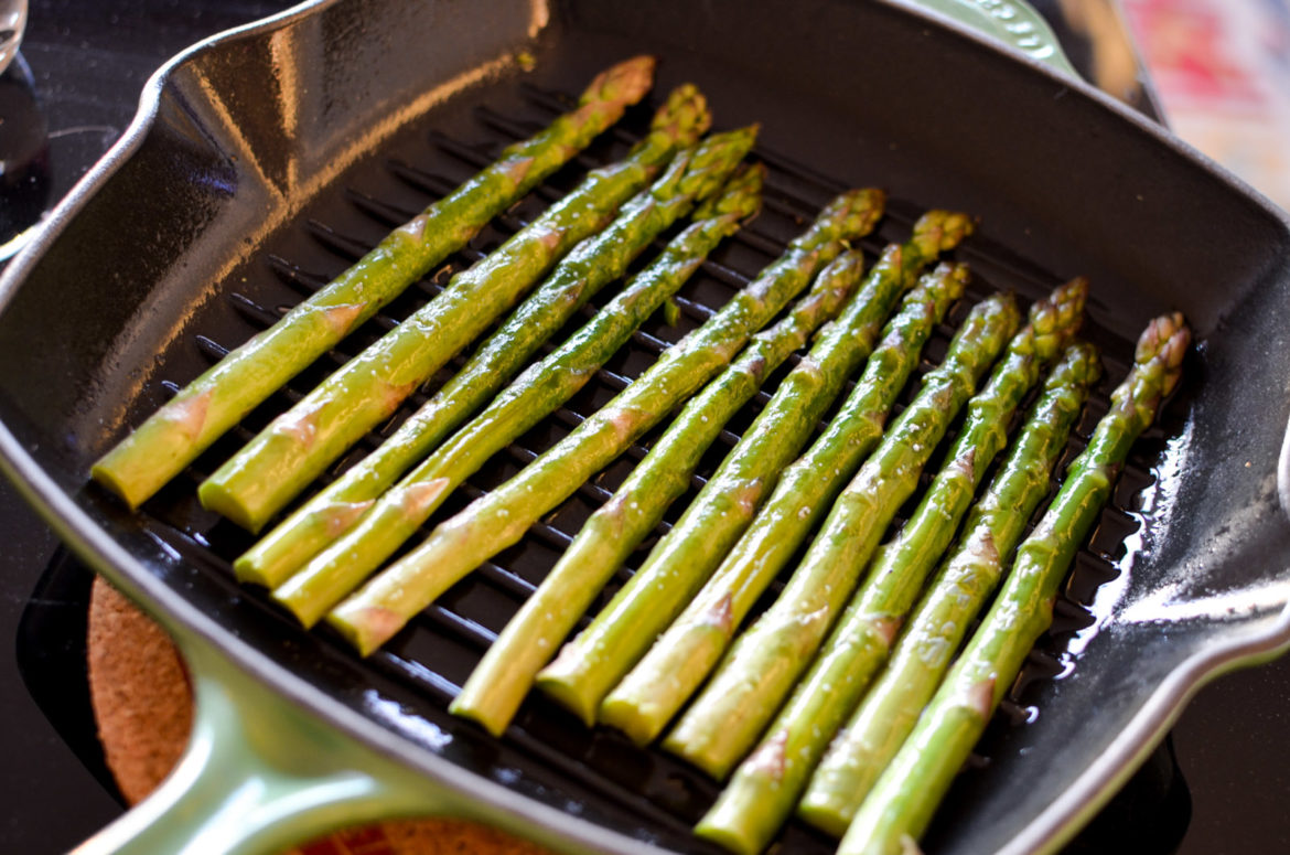 2. Faites chauffer votre gril avec un filet d’huile d’olive. Lorsque la poêle est chaude, déposez vos asperges faces coupées directement sur le gril, et saisissez-les 1 à 2 minutes tout au plus. Retournez-les, continuez la cuisson 30 secondes.