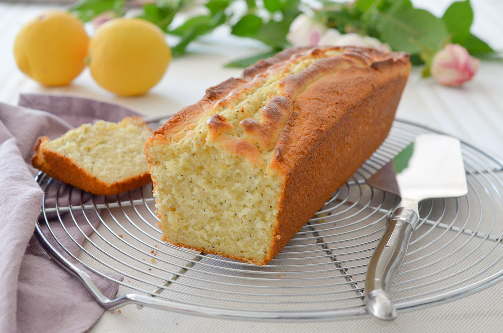 Citron – pavot… une association que j’adore !!! Mais attention, je trouve souvent les cakes au citron trop secs et trop fades…. si je poste cette recette c’est qu’elle m’a vraiment marquée. :-)