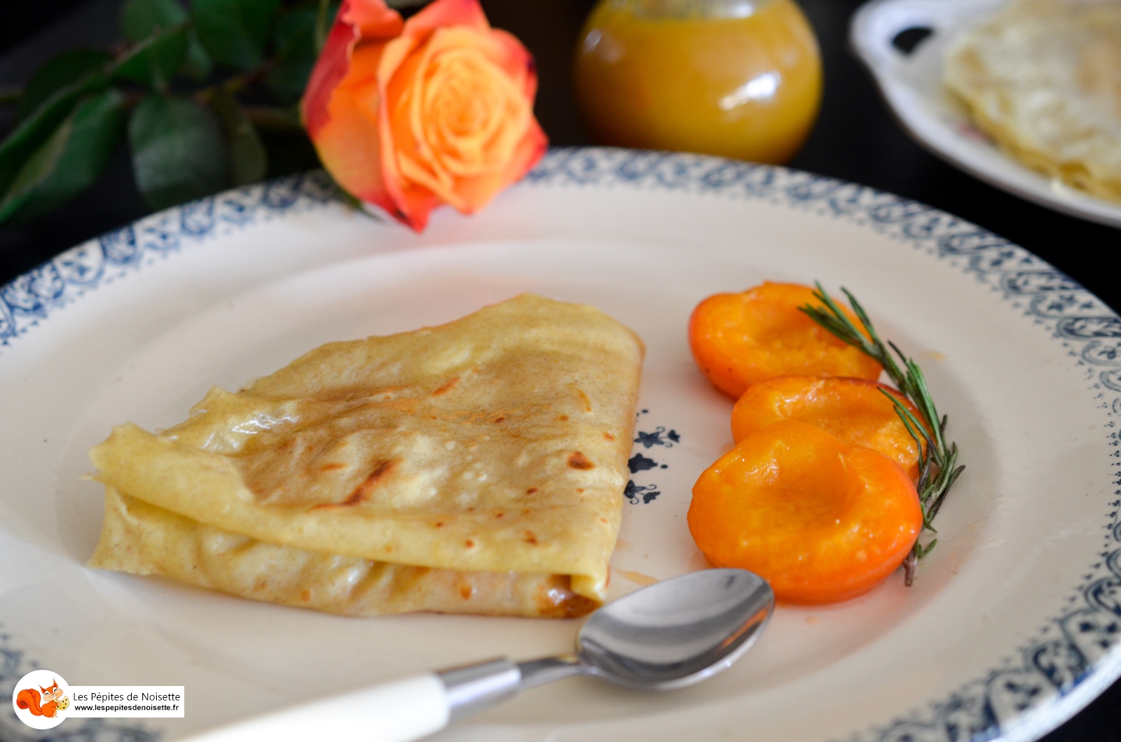 Accompagnez ces crêpes avec une boule de glace vanille ou glace au yaourt. Pour ceux qui aiment, je rajoute à la poêlée une pointe de romarin.