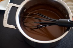2. Faites chauffer le lait avec le sucre, le curry, le sel et le balsamique. Lorsque le lait est chaud, versez petit à petit sur le chocolat concassé en ne cessant de remuer pour le faire fondre.