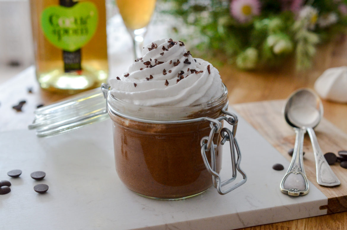 Attention, dessert extra gourmand en vue ! Voici ma mousse au chocolat surmontée d’une chantilly à la douce saveur de lait de coco. Une verrine qui en fera craquer plus d’un … et surtout qui est très facile à préparer.