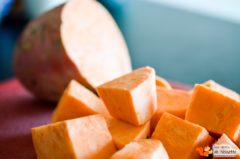 Pour la purée de patate douce, il vous suffit de cuire à la vapeur ou dans une casserole d’eau bouillante vos dés de patate douce épluchée. Lorsqu’ils sont tendres (15 à 20 minutes), mixez ou écrasez à la fourchette pour obtenir une purée lisse.