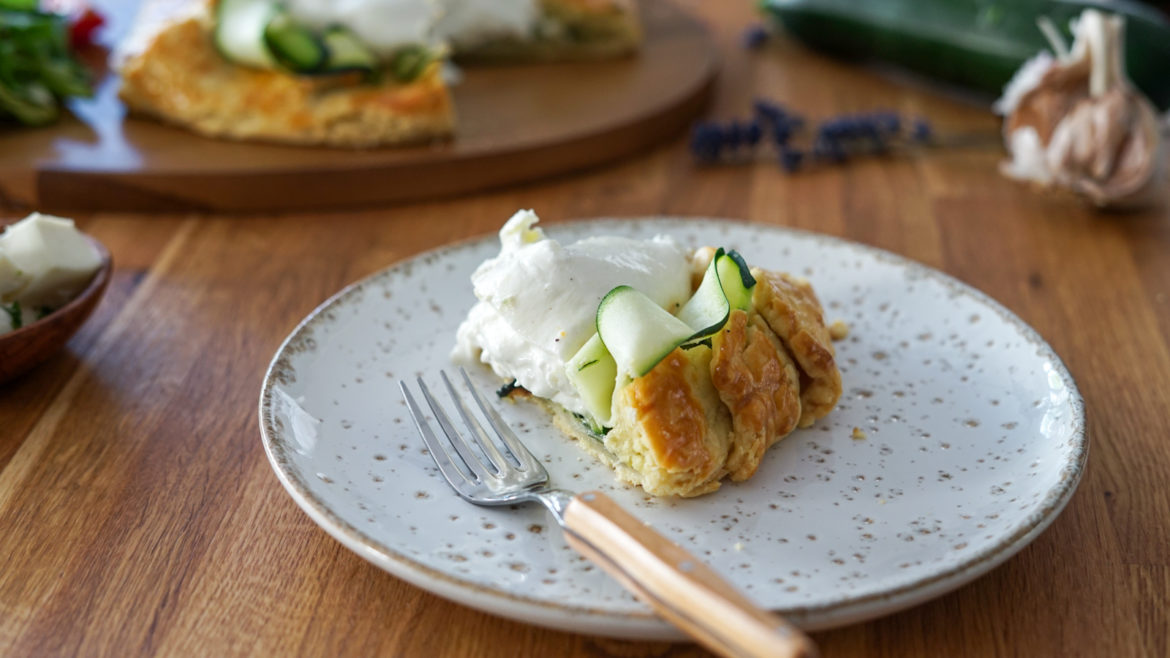Je vous explique ici comment réaliser une version de pâte rustique, mais vous pouvez très bien utiliser votre propre recette de pâte brisée, voire même en acheter une dans le commerce si vous n’avez pas beaucoup de temps. Côté garniture, rien de plus simple : des courgettes, une touche de parmesan et une burrata généreuse. Il n’en faut pas plus pour concocter un bon repas complet sur le pouce.